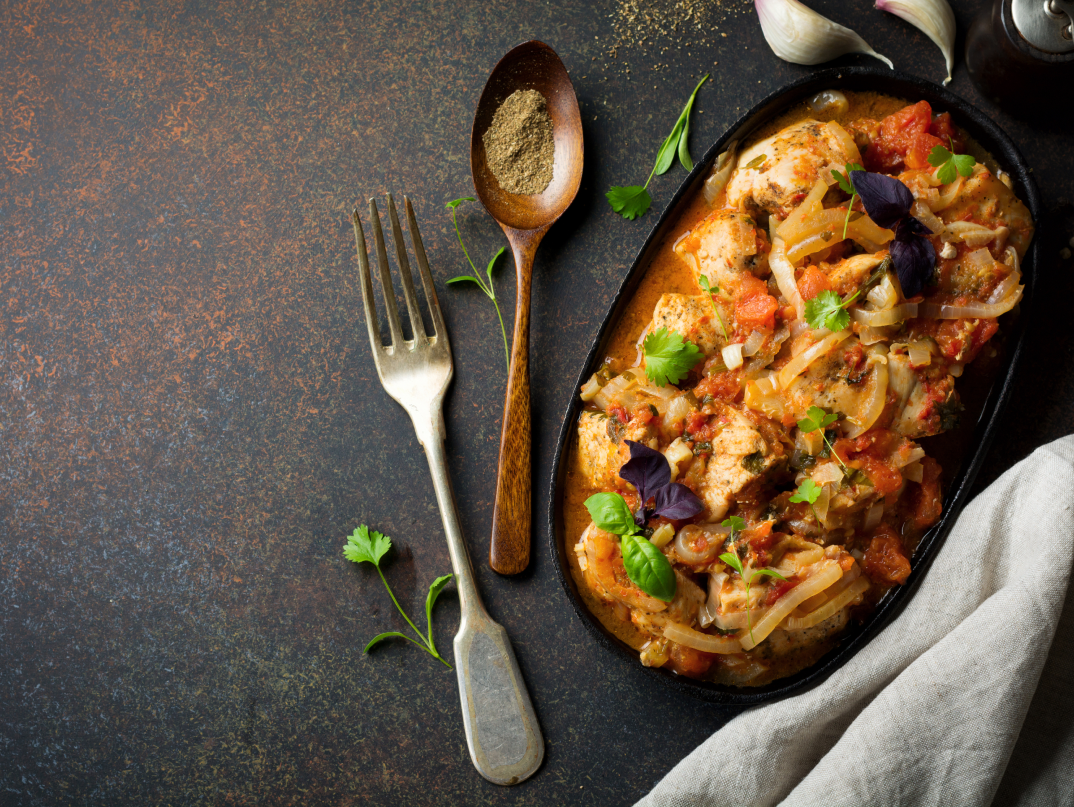 Склад: кур. грудка 100г; горіх волоський. 60г; вода 20г; шафран 5г; оцет винний 1,5 ст. олія оливк. 2ст.л.; сіль, перець за смаком; хмелі сунелі 1ч.л.; часник 5г; цибуля ріпчаста 10г.